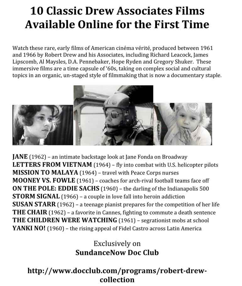 "Wherever people work hard, play hard, care very much, we can make a more powerful film." -- Robert Drew |